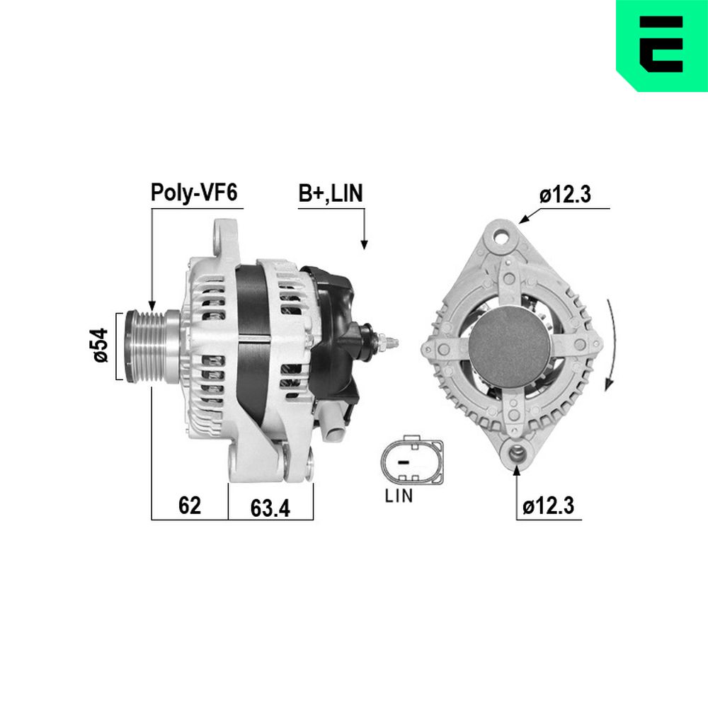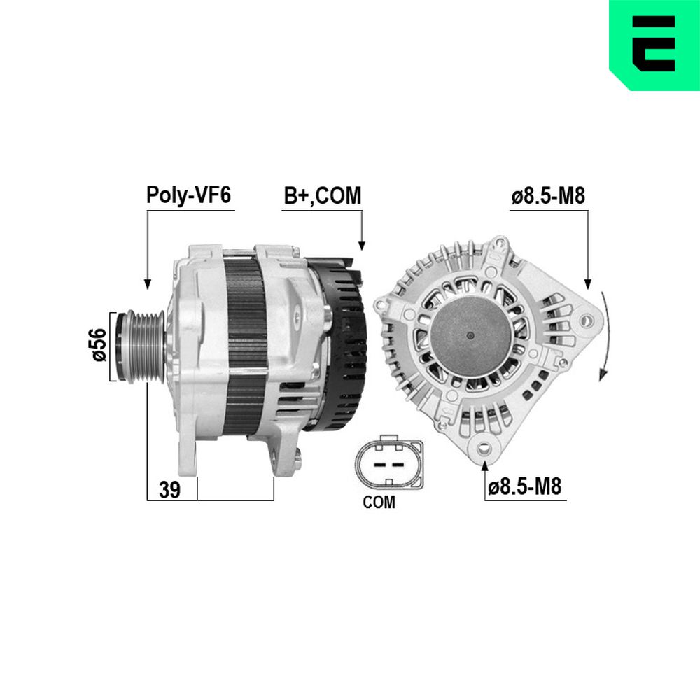 Informaciones artículos Cantidad de agujeros de fijación 2 Corriente de carga alternador [A] 180 ID del modelo de conector COM Número de canales 6 Poleas con polea de rueda libre poleas - Ø [mm] 56 Sentido de giro Sentido de giro a la derecha (horario) Tensión [V] 12 | |