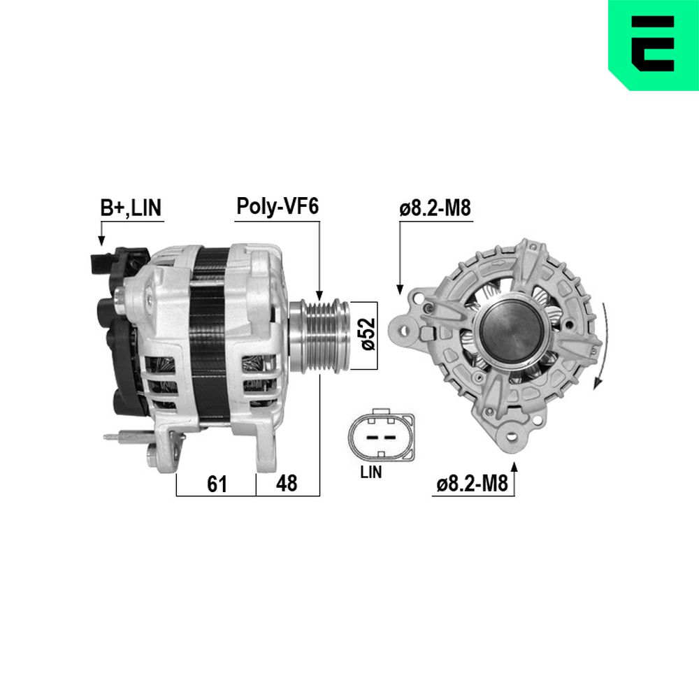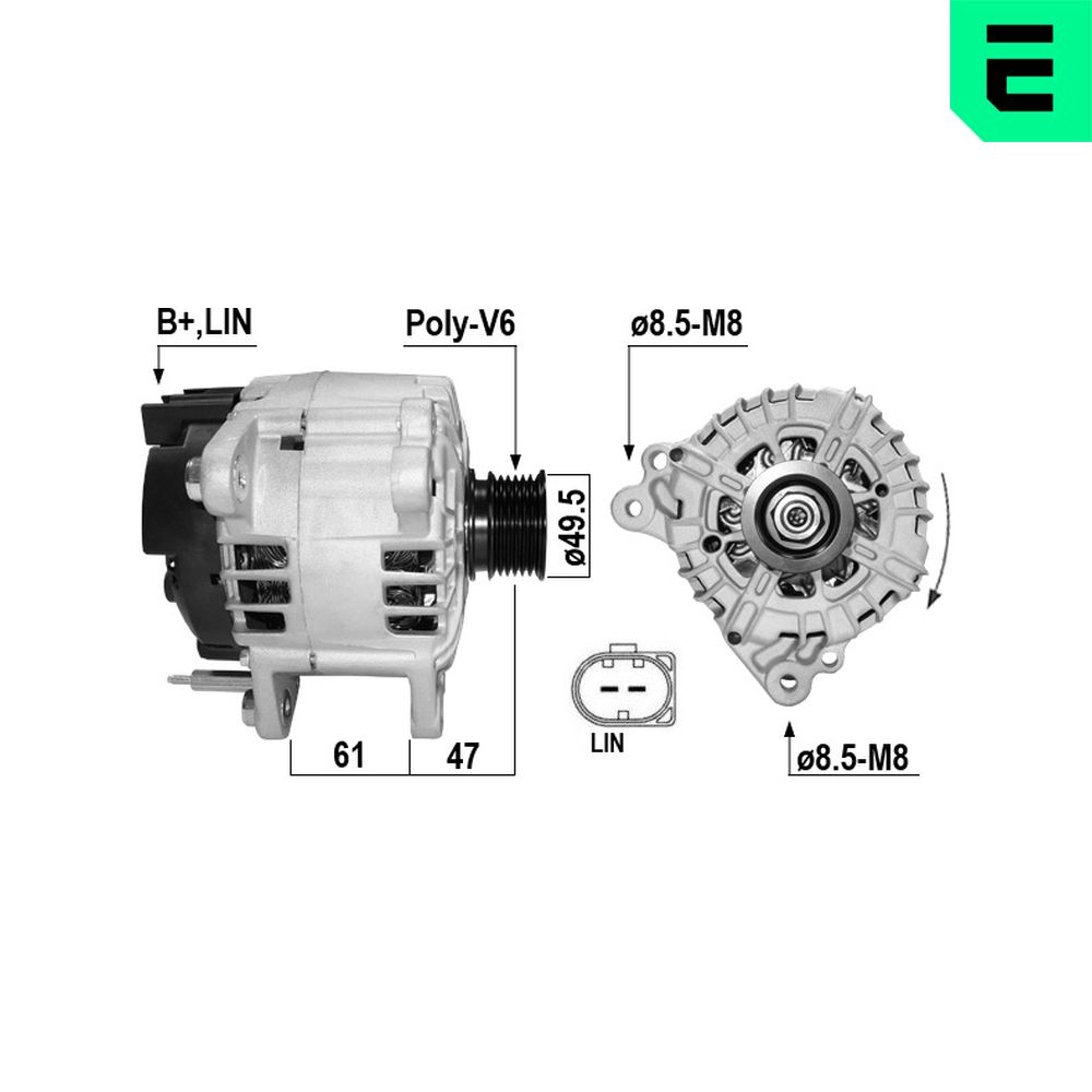 Informaciones artículos Corriente de carga alternador [A] 180 ID del modelo de conector LIN/COM Número de canales 6 Poleas con polea poleas - Ø [mm] 49 Sentido de giro Sentido de giro a la derecha (horario) Tensión [V] 12 | |