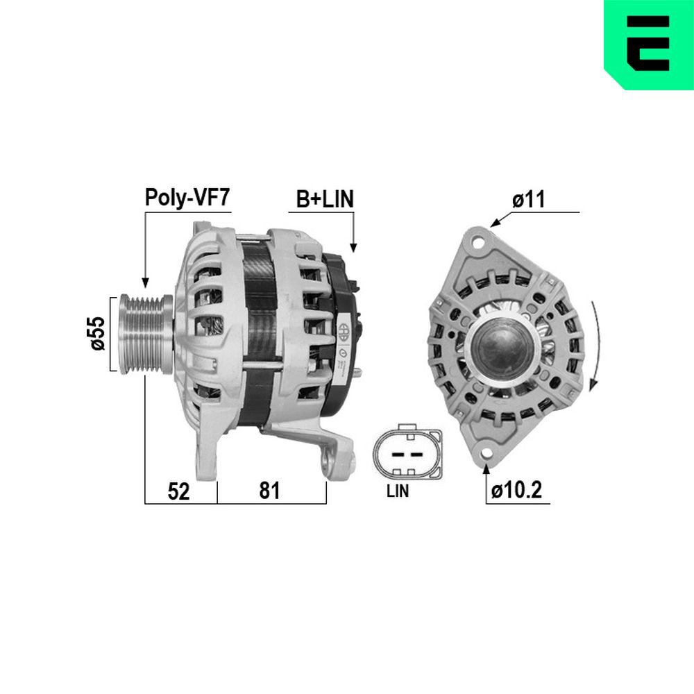 Informaciones artículos Cantidad de agujeros de fijación 2 Corriente de carga alternador [A] 150 Número de canales 7 Pinza COM/LIN2 Poleas con polea de rueda libre poleas - Ø [mm] 55 Sentido de giro Sentido de giro a la derecha (horario) Tensión [V] 12 | |
